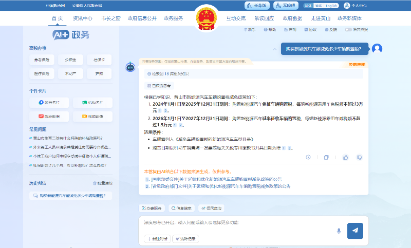 黄山市基于大模型的多专家架构 “AI + 政务” 项目以 “安全、有效、友好” 为核心原则,通过技术攻坚与模式创新实现了多重突破:项目聚焦政策解读、办事指南、旅游咨询等高频需求场景,依托政府网站、政务服务网、政务新媒体及皖事通APP等平台,完成电脑端与移动端的全渠道接入,面向公众侧提供 “问办事”“问政策”“问数据”“问市情”“问旅游” 等一站式服务,实现了政务服务从 “四处找” 到 “直接问”、从 “一框搜” 到 “一窗问”、从 “给链接” 到 “给答案” 的跨越,有效解决了传统智能问答系统普遍存在的 “问而不答、答非所问” 问题;同时面向政府侧提供知识管理、数据治理、问答监控、安全处置及决策分析等功能,助力提升政务平台运营效率与科学决策能力,具备显著的行业引领性与实践示范意义。