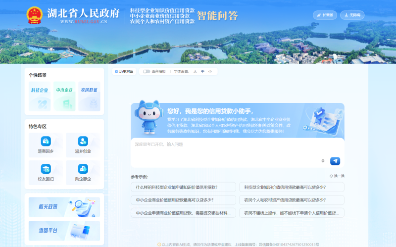 湖北三项信用贷款服务平台“AI信贷助手”