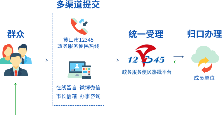 建立“多渠道提交、统一受理、归口办理、统一反馈”工作机制,实现群众咨询、建议、投诉等问题轻松“指尖办”。