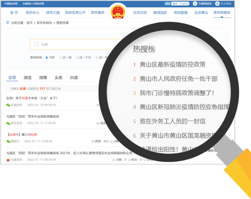 基于最新智能搜索技术,全力打造“搜索即服务”,聚合群众关切的热点信息,形成“热搜榜”。